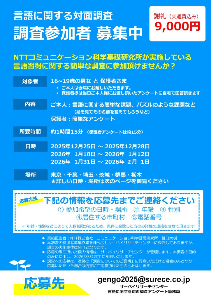 言語調査に関わる参加者募集のお知らせ